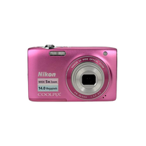 A stylish and compact device for spontaneous moments. It is a vibrant pink littered with old stickers, reflecting Nessa's sense of style.